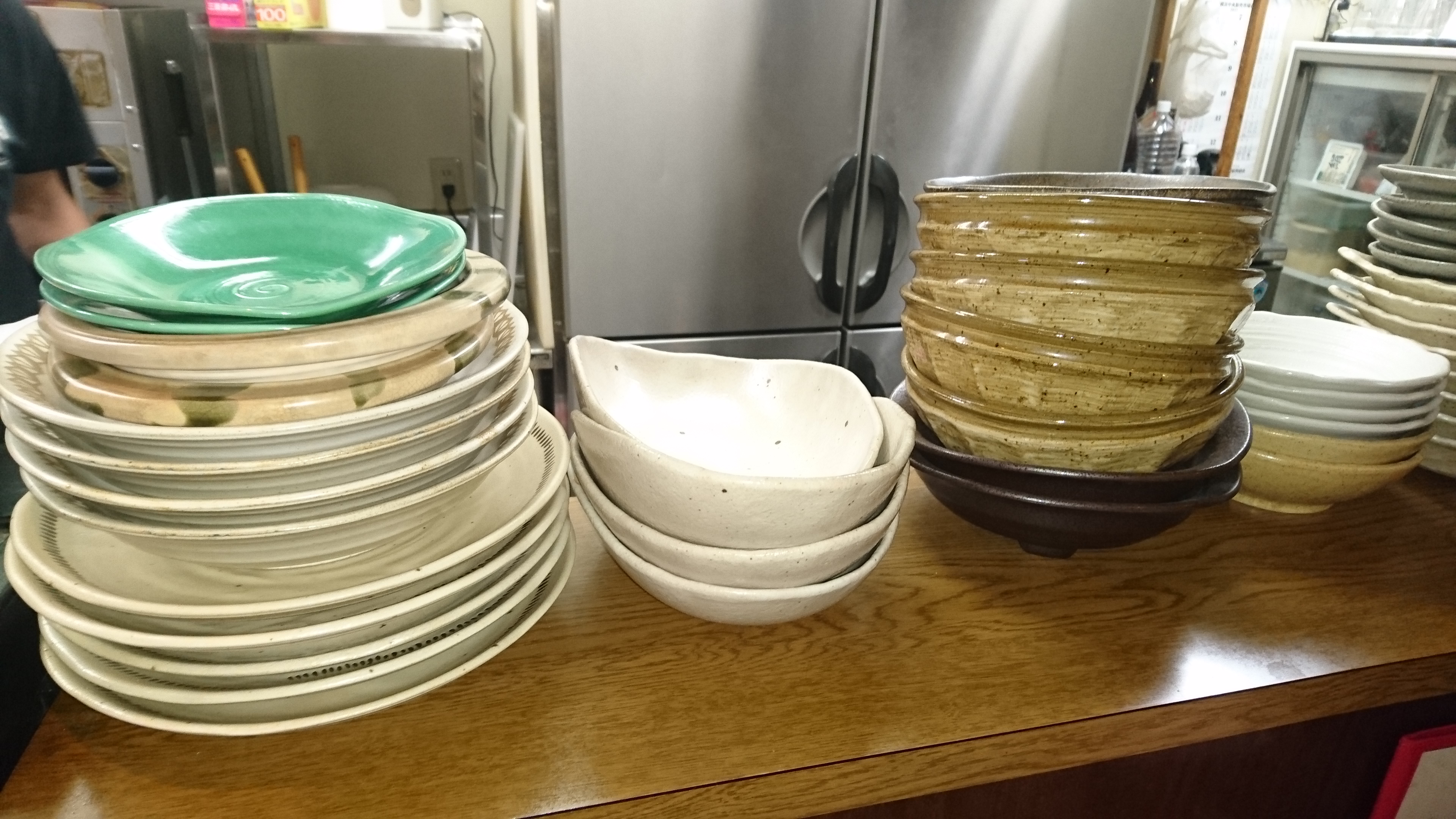 色んな陶器のお皿や、グラスがあります。器でそのお料理の美味しさって変わりますよね。
