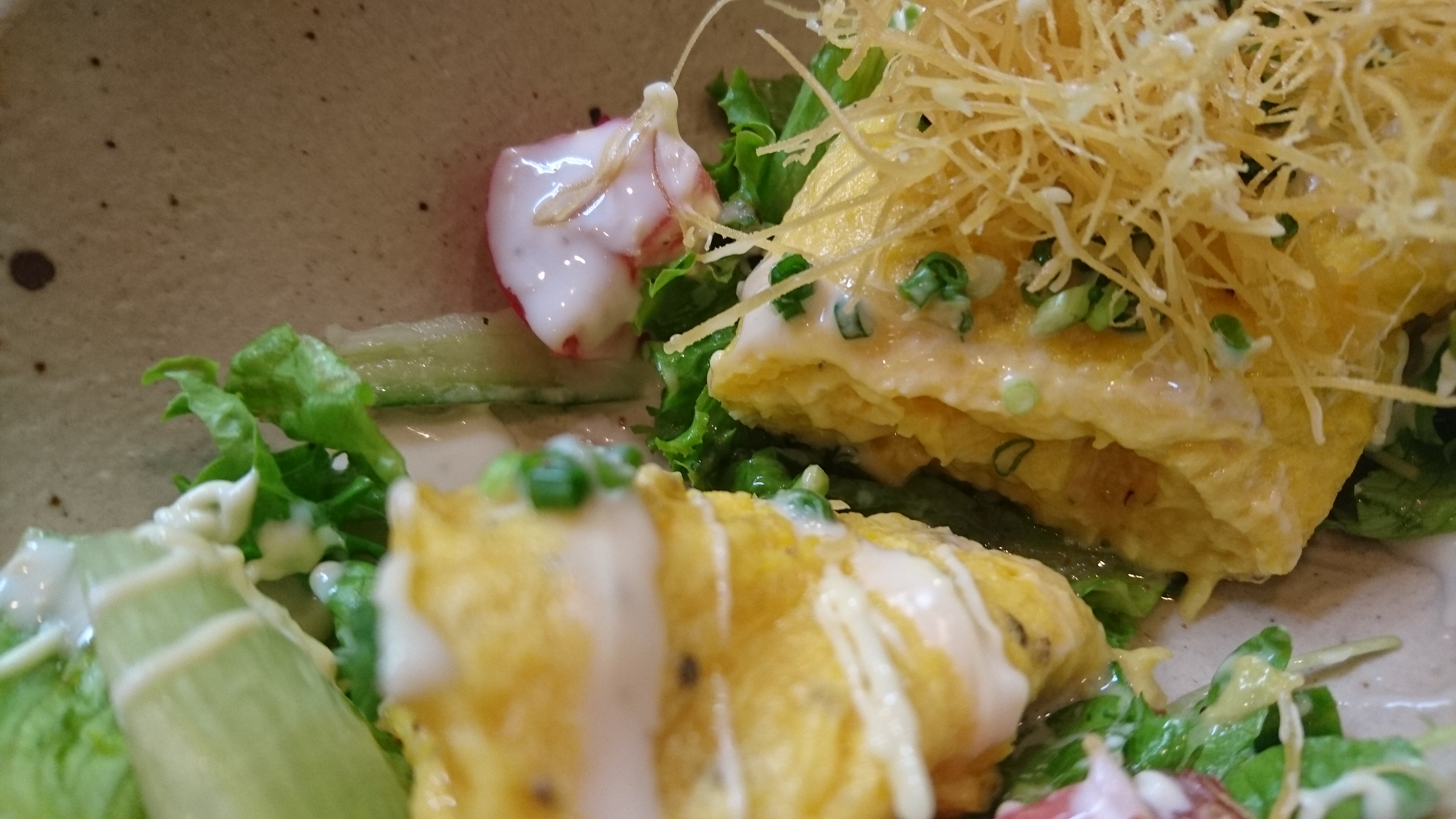 温かくてふわふわのオムレツと、野菜の冷たさとシャキッとした食感が、クセになる。