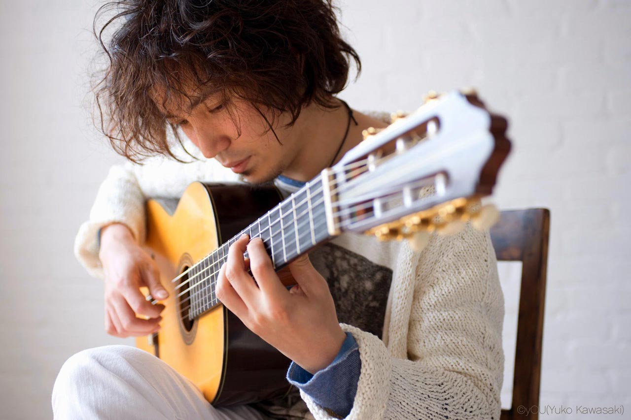 温かみのある音色のギターに加えソフトなヴォイスの弾き語りも披露している。