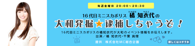 2月13日(金)20日(金)「16代目ミニスカポリス橘知衣代の大和発掘☆逮捕しちゃうぞ!」ゲスト「船岡 咲」