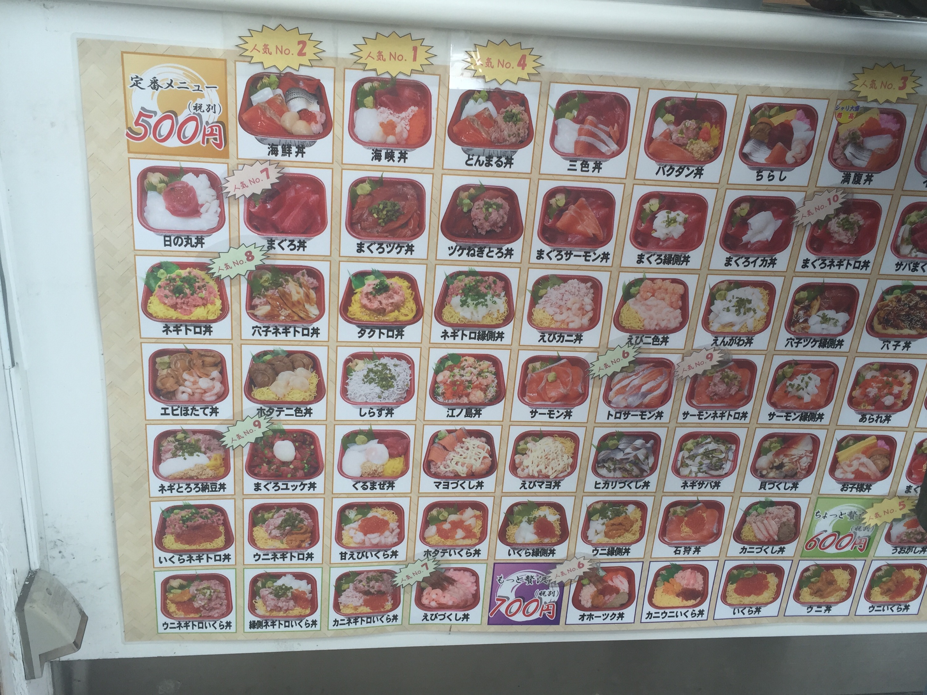 マグロ、イカ、ホタテ、サーモン、イクラなどなどがたーっぷり乗った海鮮丼やカツ丼やすき焼き丼などのお肉系も充実してます。