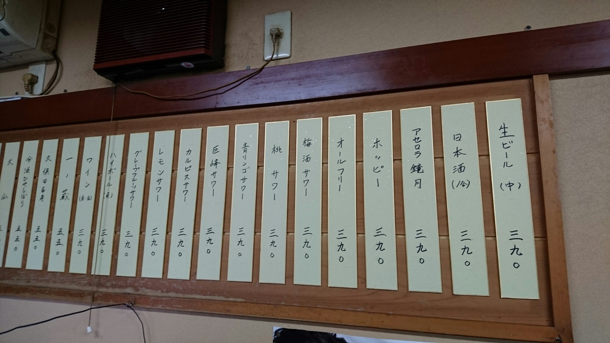 店内には、390円のお料理メニューがいっぱい。