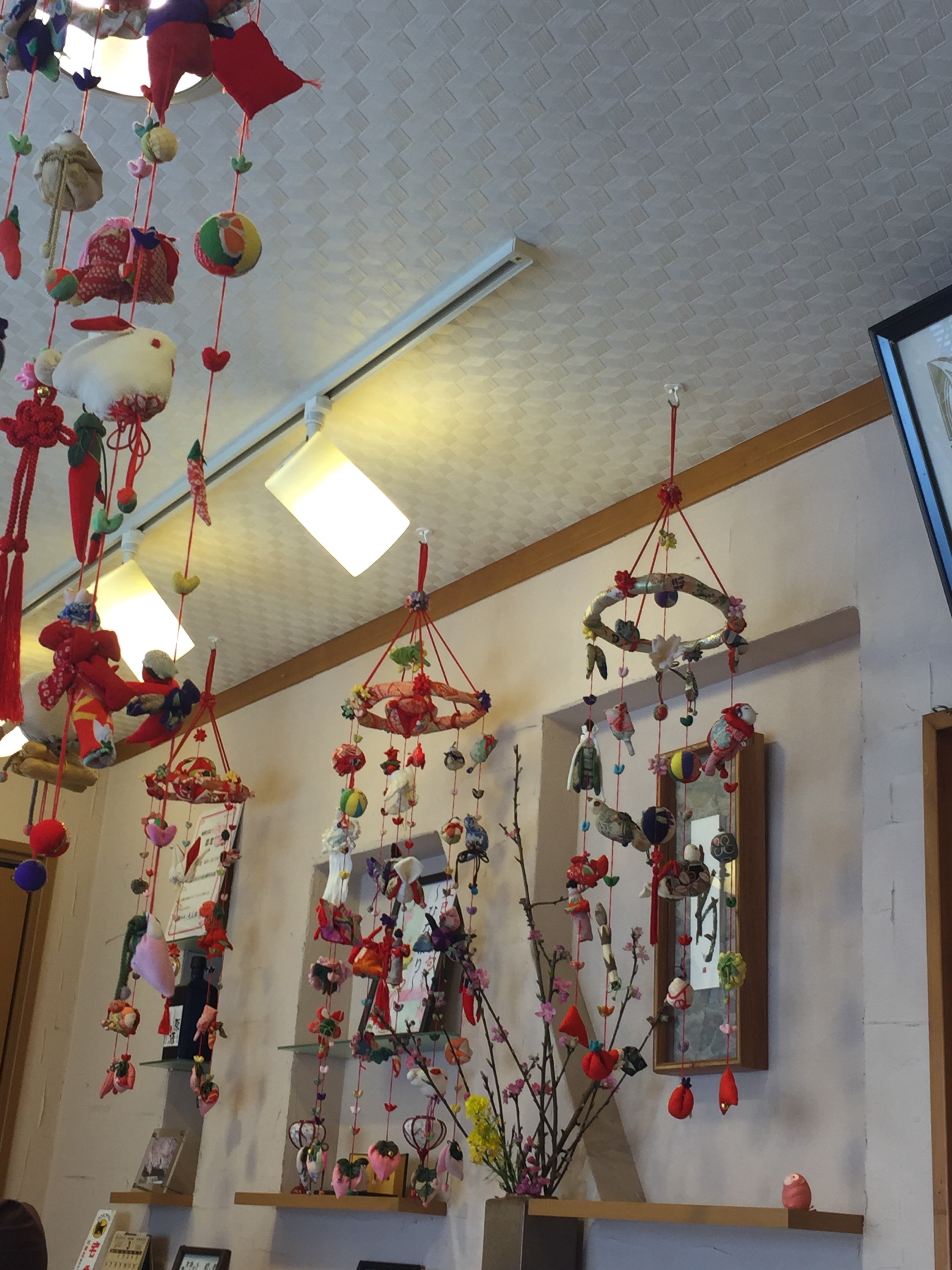 澄子さんの宝物、つるし雛。鎌倉在住の大好きな作家さんに、お金を貯めては1年に一つずつ特注で作ってもらっているそうです。お店に飾ってお客様にお披露目です。