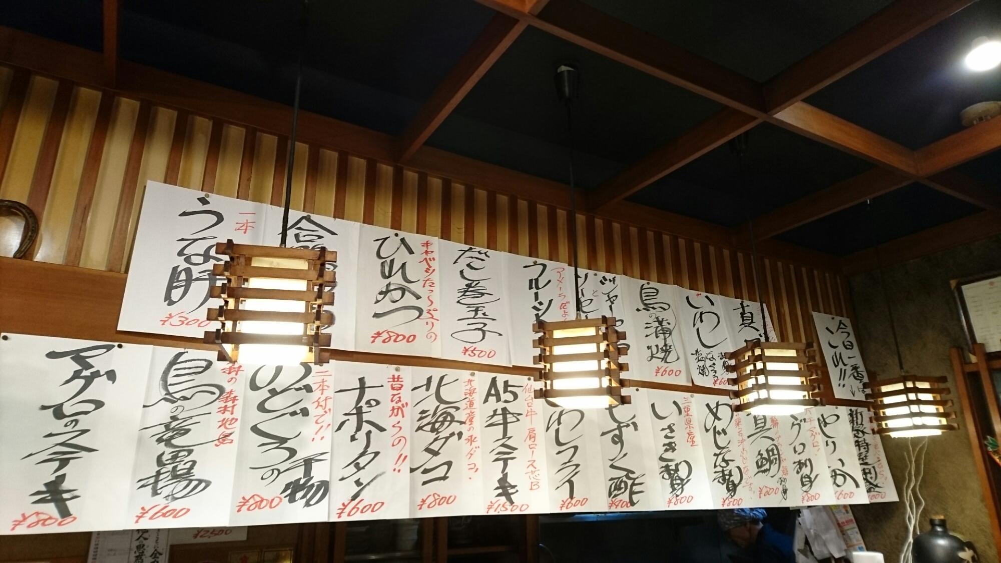 おやじさん手書きのメニューが、カウンター上に~!