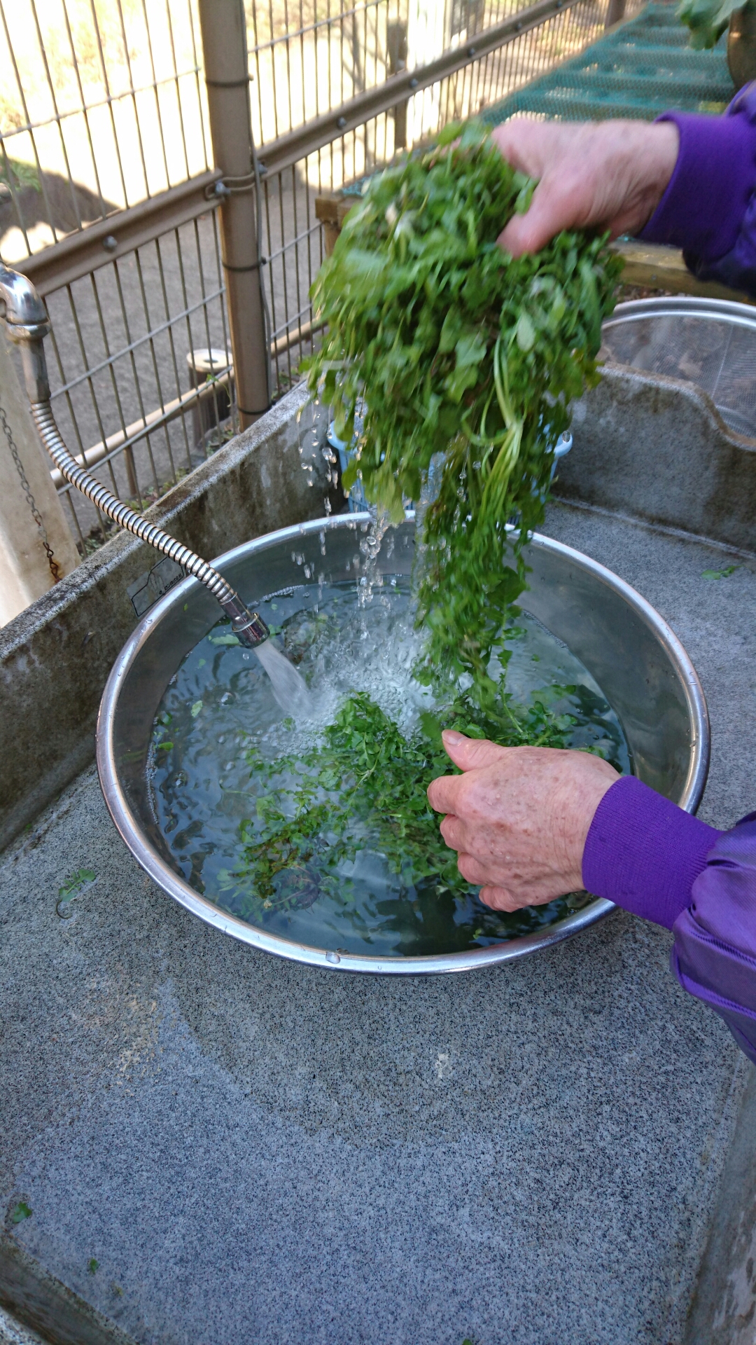 園内で、すずな、すずしろを採り、せり、なずなは、泉の森で採取。