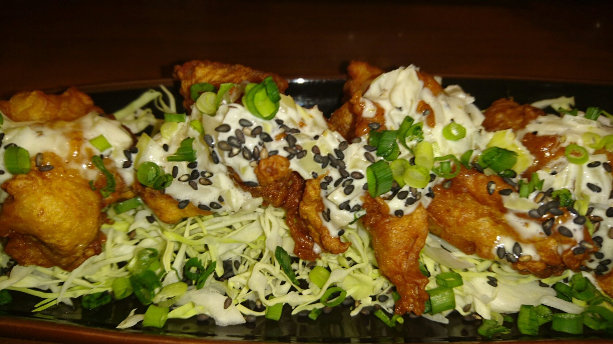 お肉自体には、味付けはしてないそうなんですが、衣にすこーししょうゆのテイストを入れて揚げている唐揚げ。そこにタルタルソースの甘さが加わり、味のバランスがちょうどよくなるんですよ。くどくなく、甘味があるけど、わりとさっぱりしています。また、上にすこーーしゴマがふりかけてあるんですが、このゴマちゃんも良い味出してます☆美味しくて、いくらでもいけちゃうよ~♪♪♪