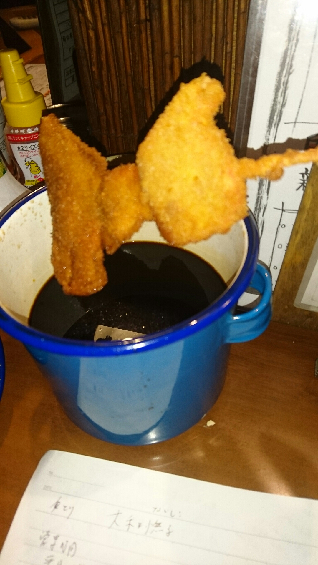 フライにする時と、また一味違うんですね~。串揚げの方が、パン粉が細かい分、よりカリッとしてるのかなぁ。こちらは、レモンを絞って頂きました。常連さんは、タルタルソースをかけるのがお好きな方も多いとか。これも、間違いない一本‼‼