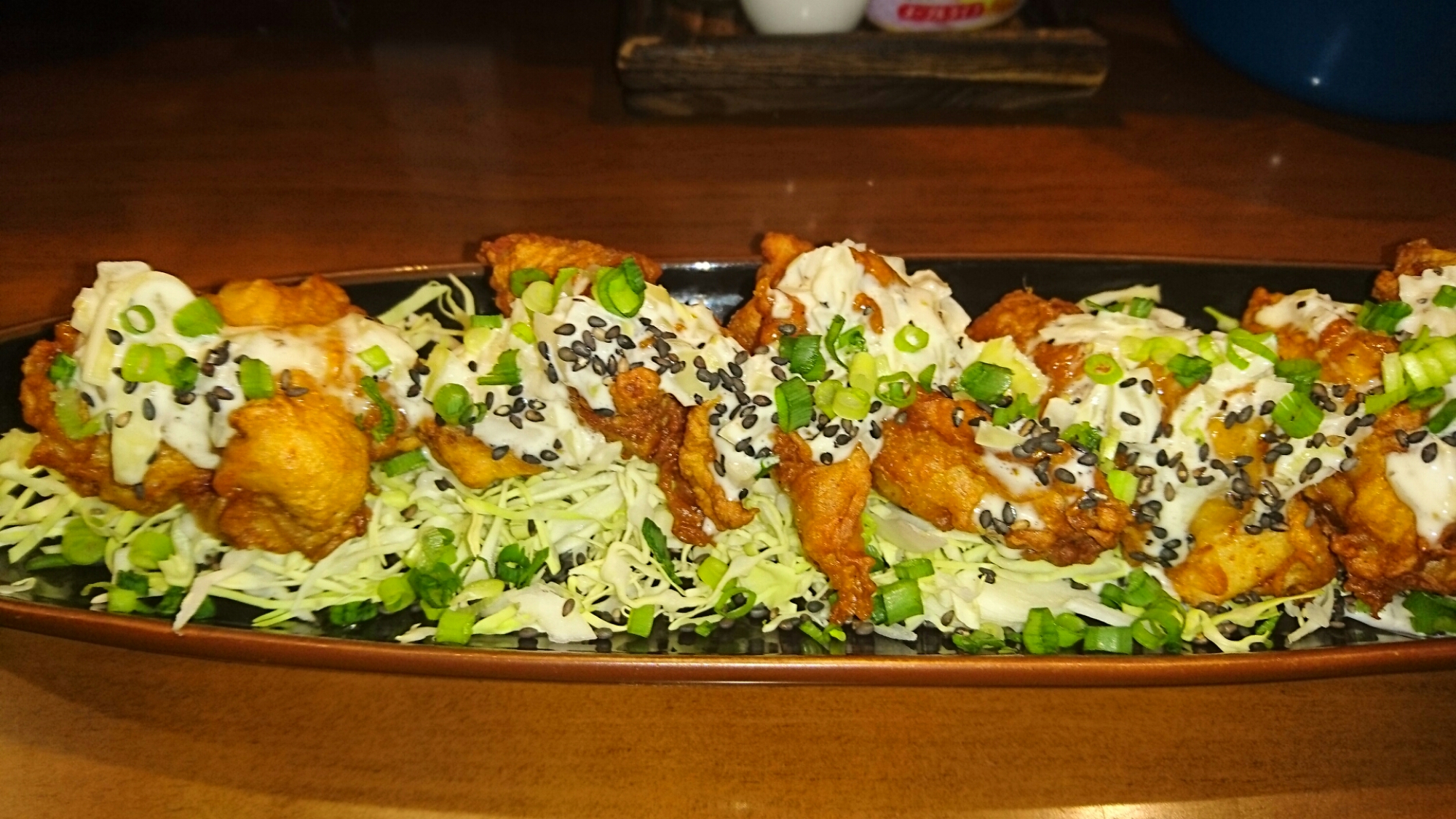 ・オープン時から大人気‼‼ タルタル唐揚げ。10年前にオープンした時から、ずっと皆さん愛されている大人気メニュー!