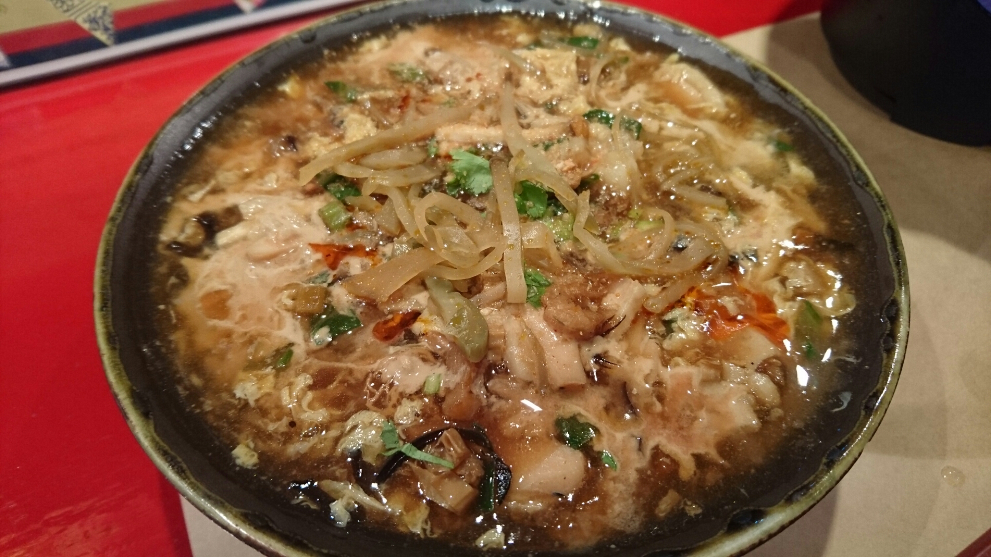 あんかけ豆腐みたいな一皿。このあんも、具沢山で、鶏肉、エビ、ザーサイ、しいたけ、湯葉、ニンジン、キクラゲなどが入っています。
