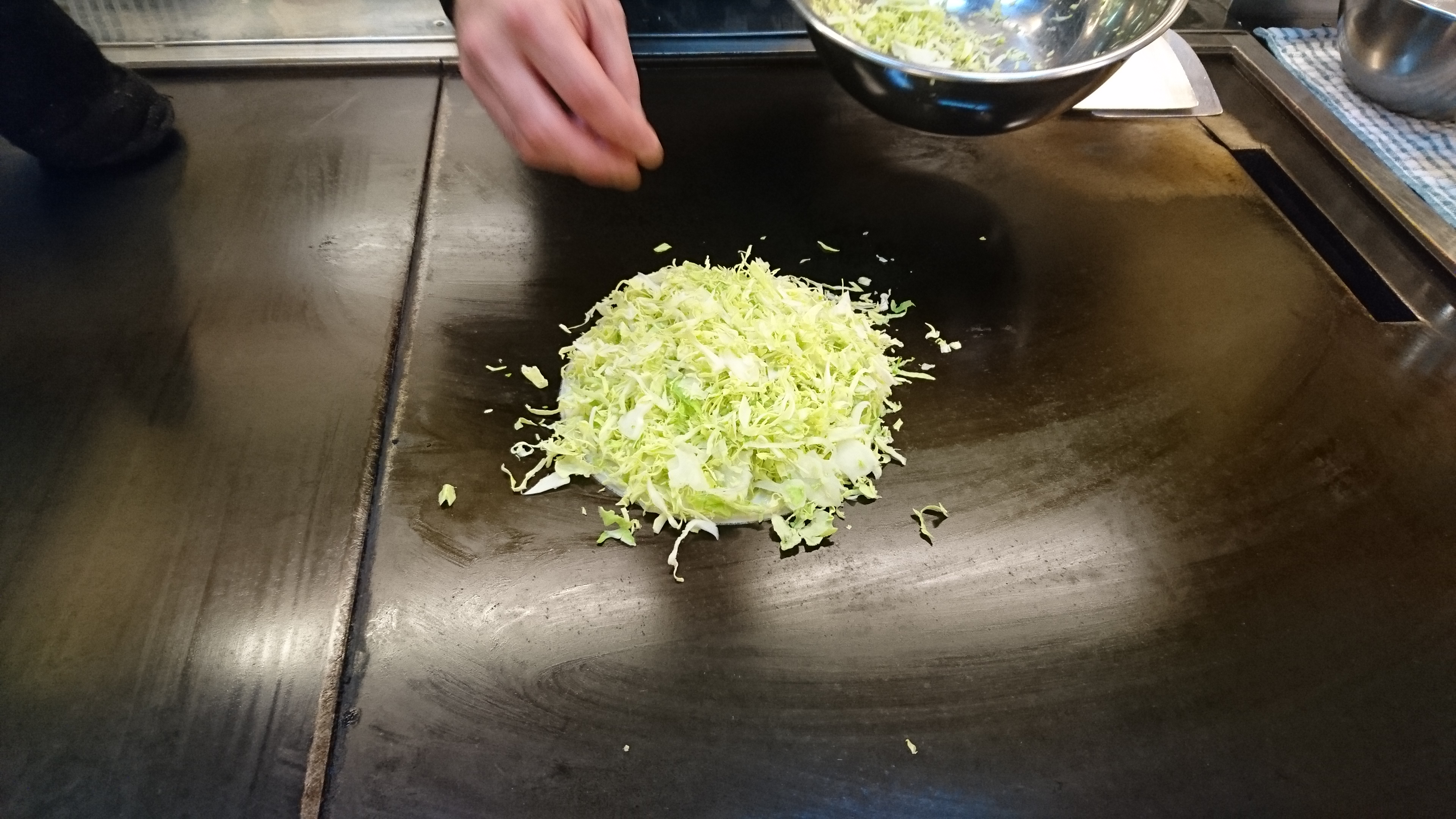テーブルの鉄板に運んで~