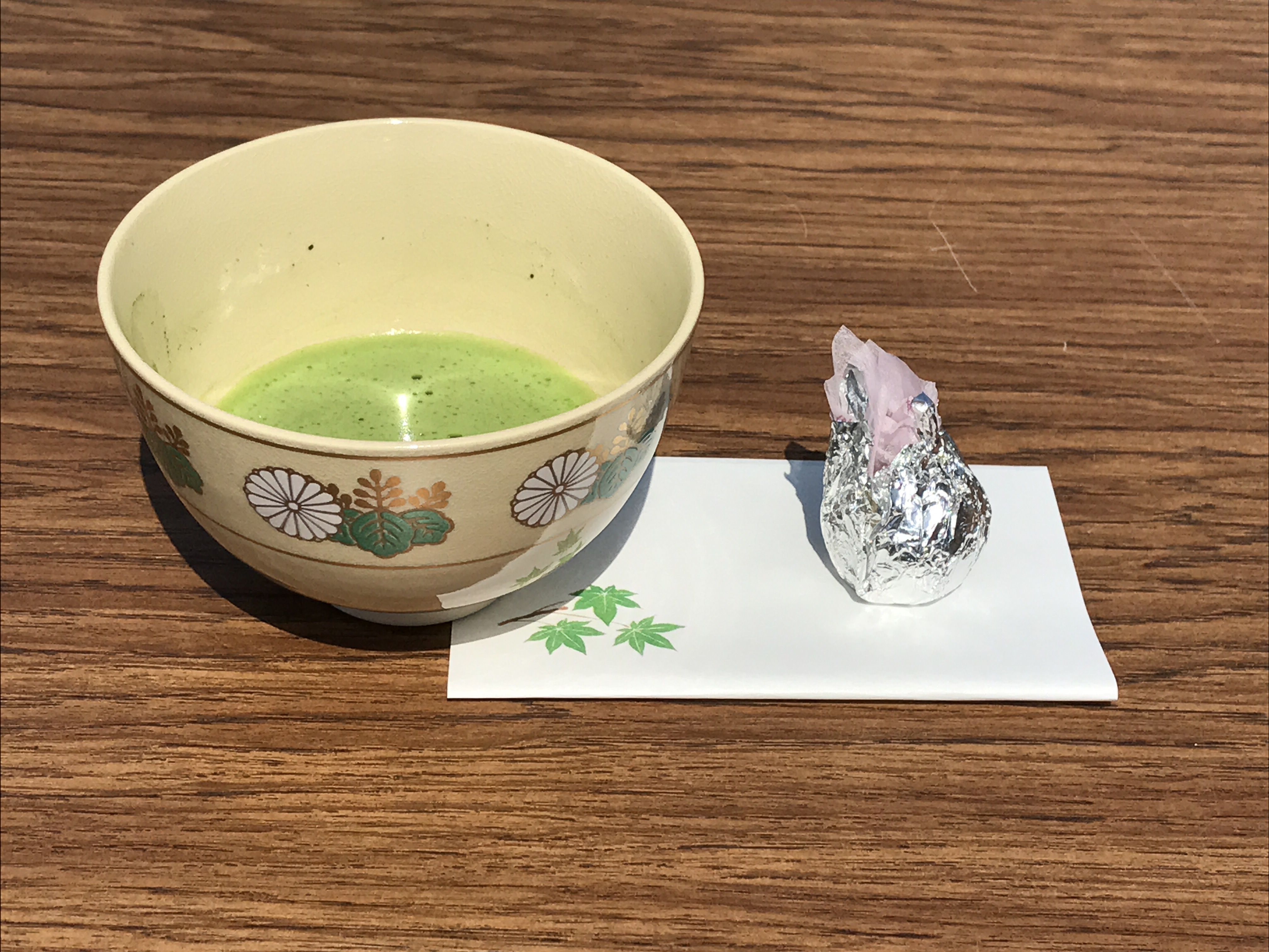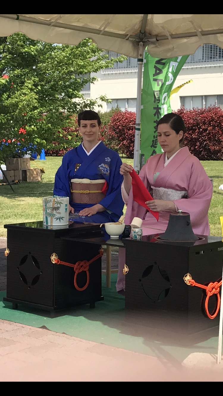 着物を着たNAF厚木茶道クラブの方が、目の前でお茶を立ててくれました!
