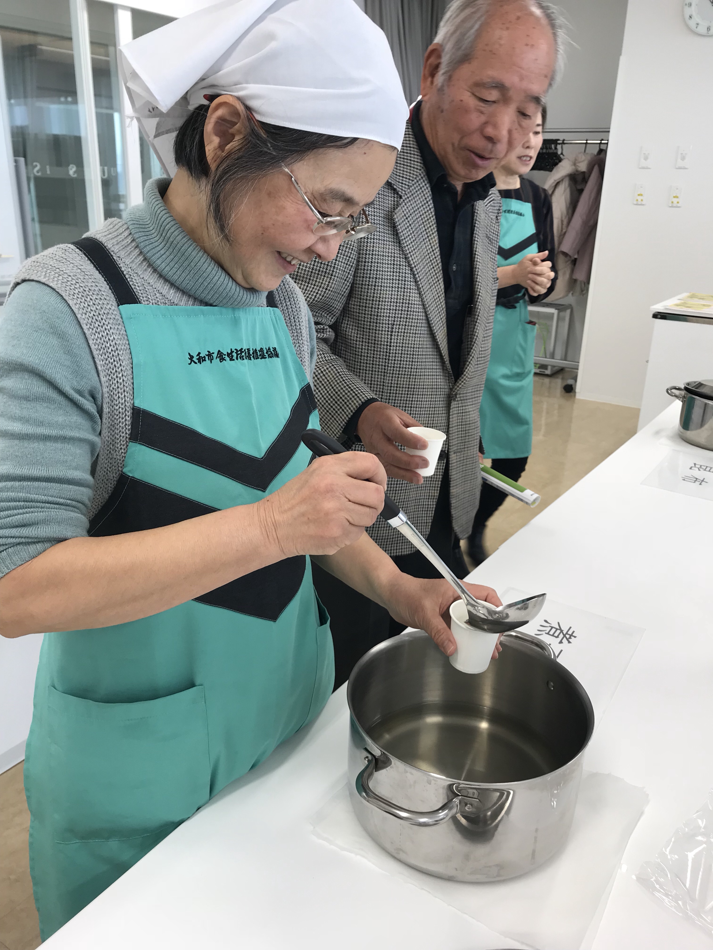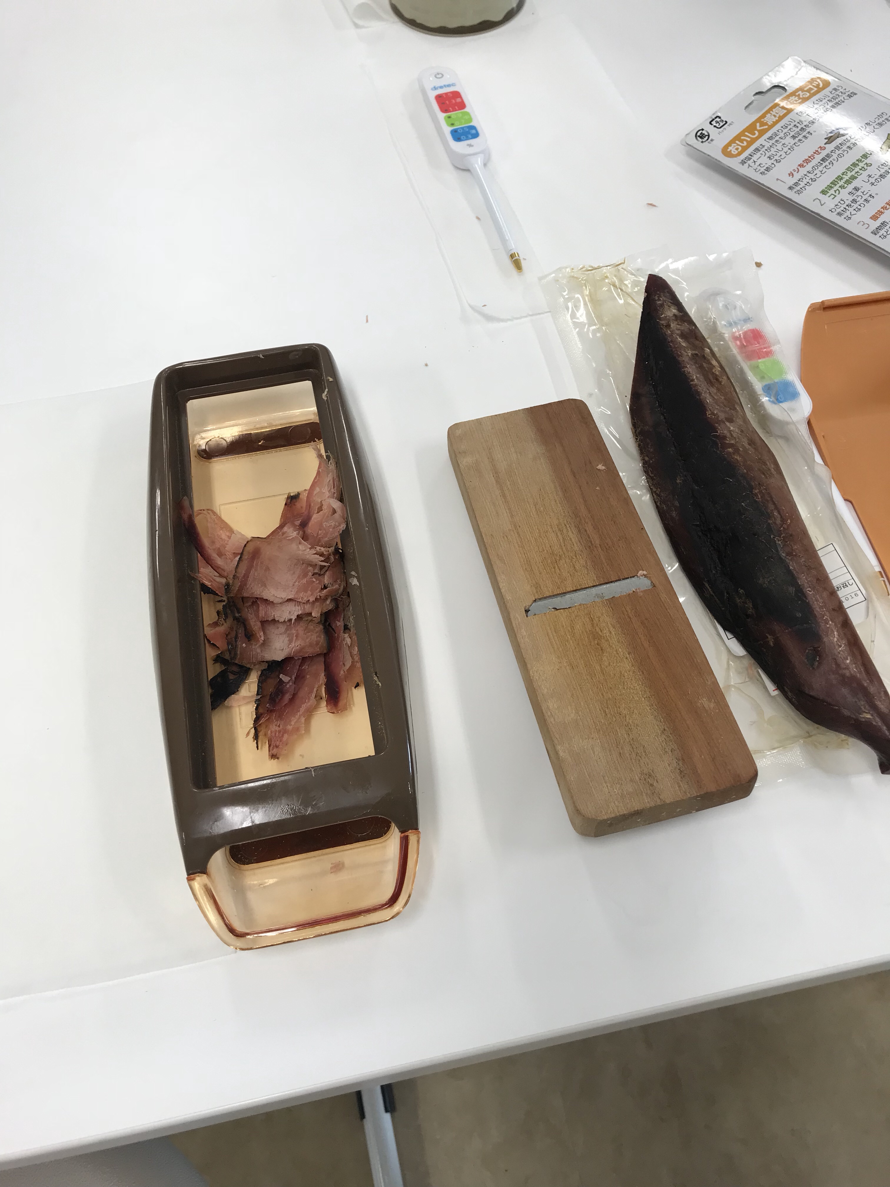 食生活改善推進団体さんによる出汁の味比べ。カツオを削ったり出来ます!
