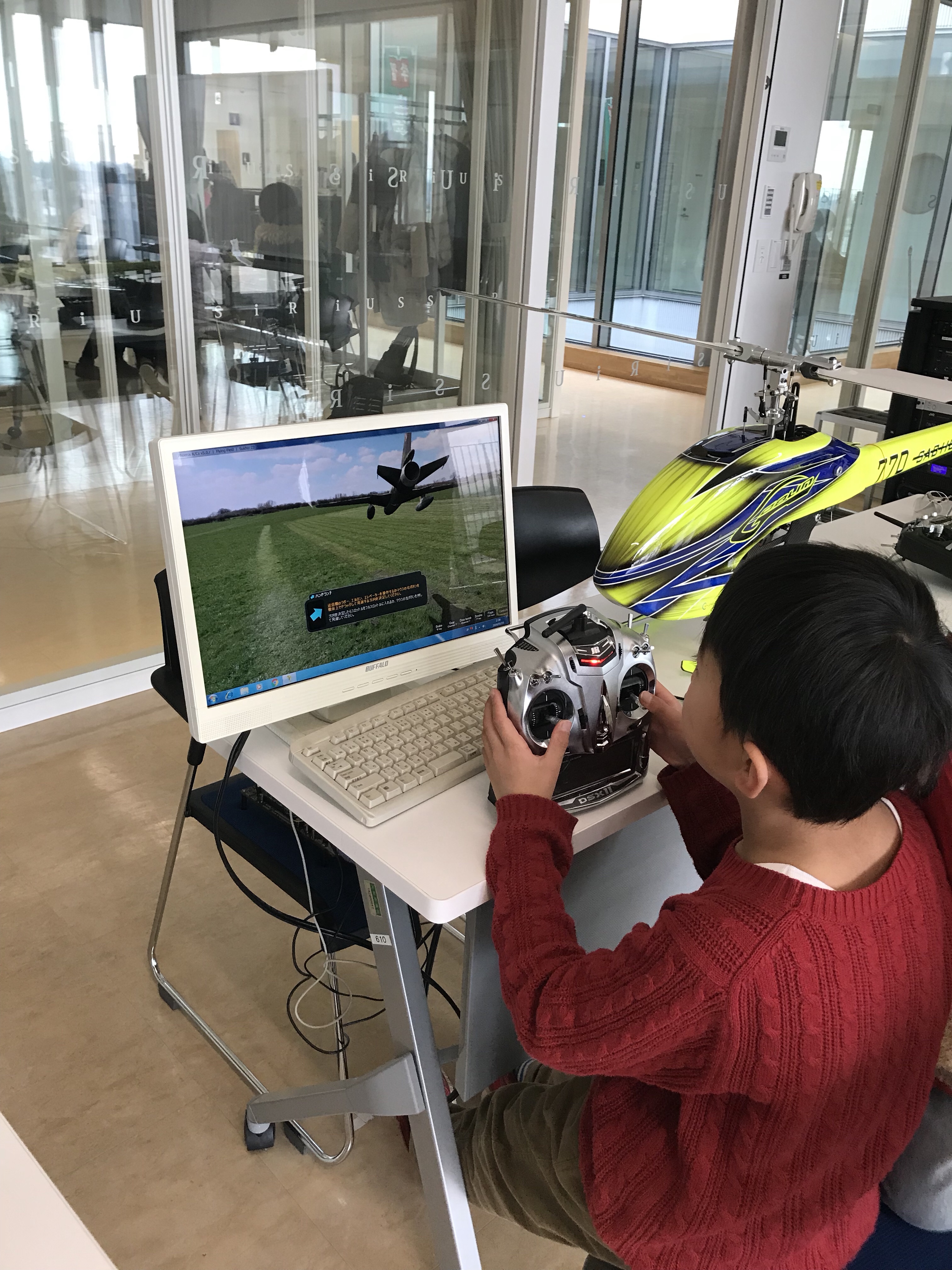 資格がないと本物のドローンは飛ばせないので、疑似体験ですが、男の子が夢中で体験しておりました(^ ^)