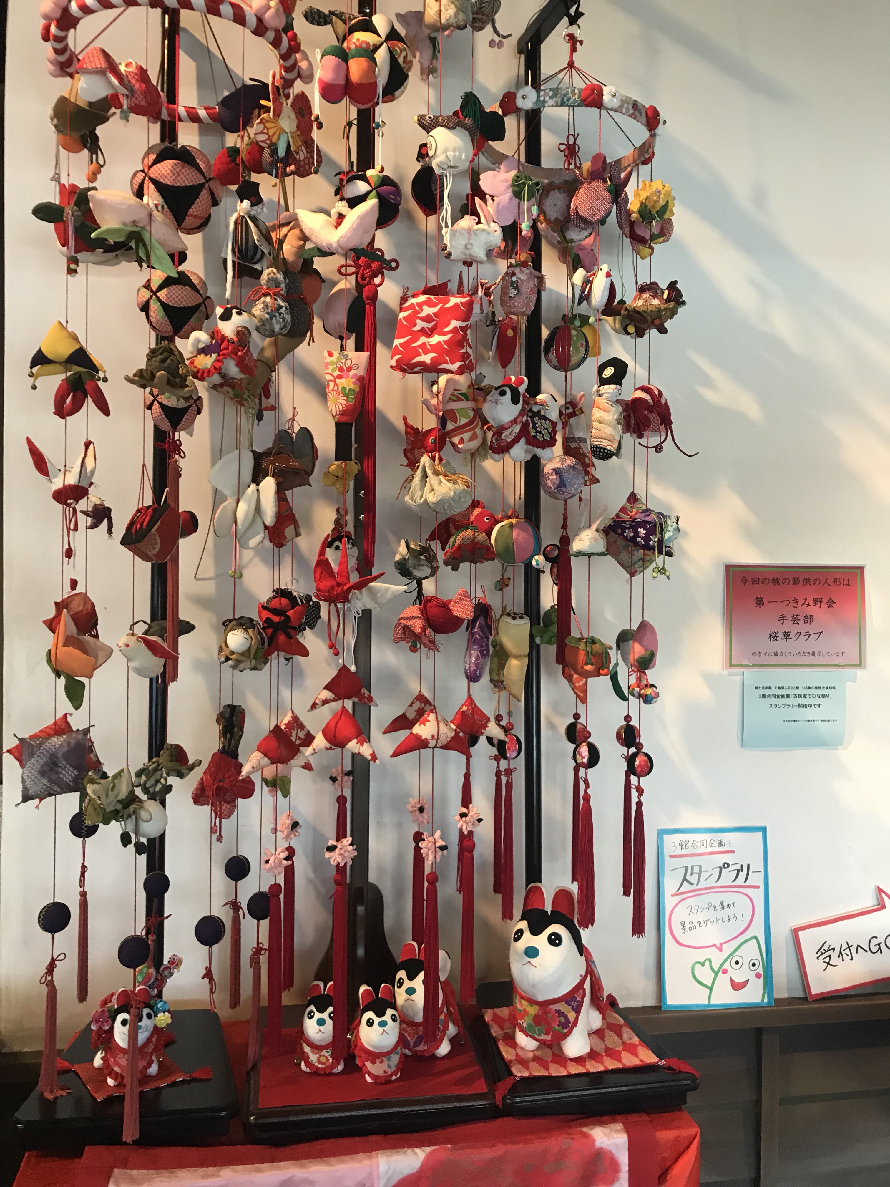 雛壇飾りや近隣自治会の手芸クラブがつくった吊るし雛などの作品が約150点も展示されています!!1つ1つ数えると500点以上(*´꒳`*)
