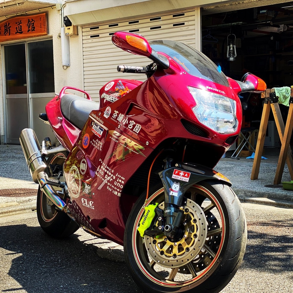(大学二年の時に初めて購入した大型バイクで現在15万km突破 初代配達車、このバイクで今のカミさんを見つけて、結婚式にもバイクを搬入して一緒に式をあげたので、今後手放すことはありえない、番頭の体の一部と化してしまっている一番大事なバイクです)