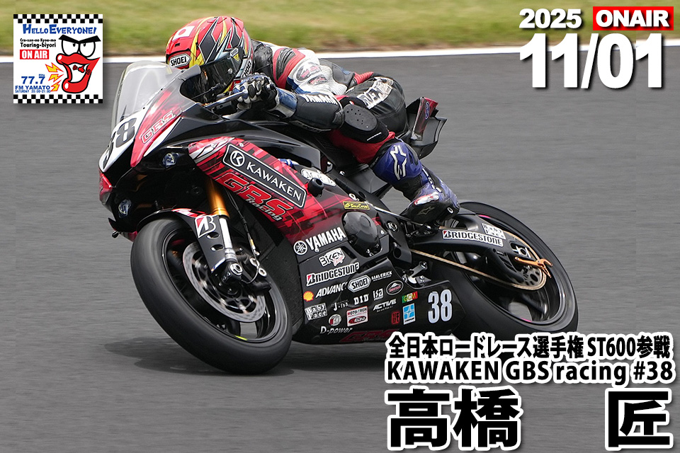 - 2025/11/01(土)20時放送 高橋匠 選手 全日本ロードレース選手権 ST600 #38 / KAWAKEN GBSracing