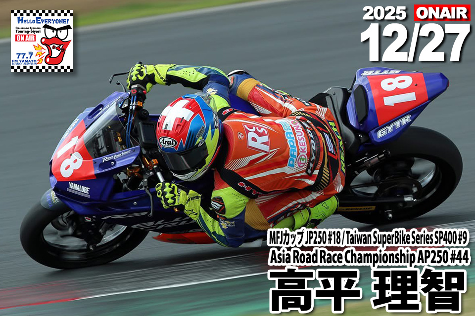 - 2025/12/27(土)20時放送 高平理智選手 17歳 MFJカップ JP250 #18 / Taiwan SuperBike Series SP400 #9 /Asia Road Race Championship AP250 #44
