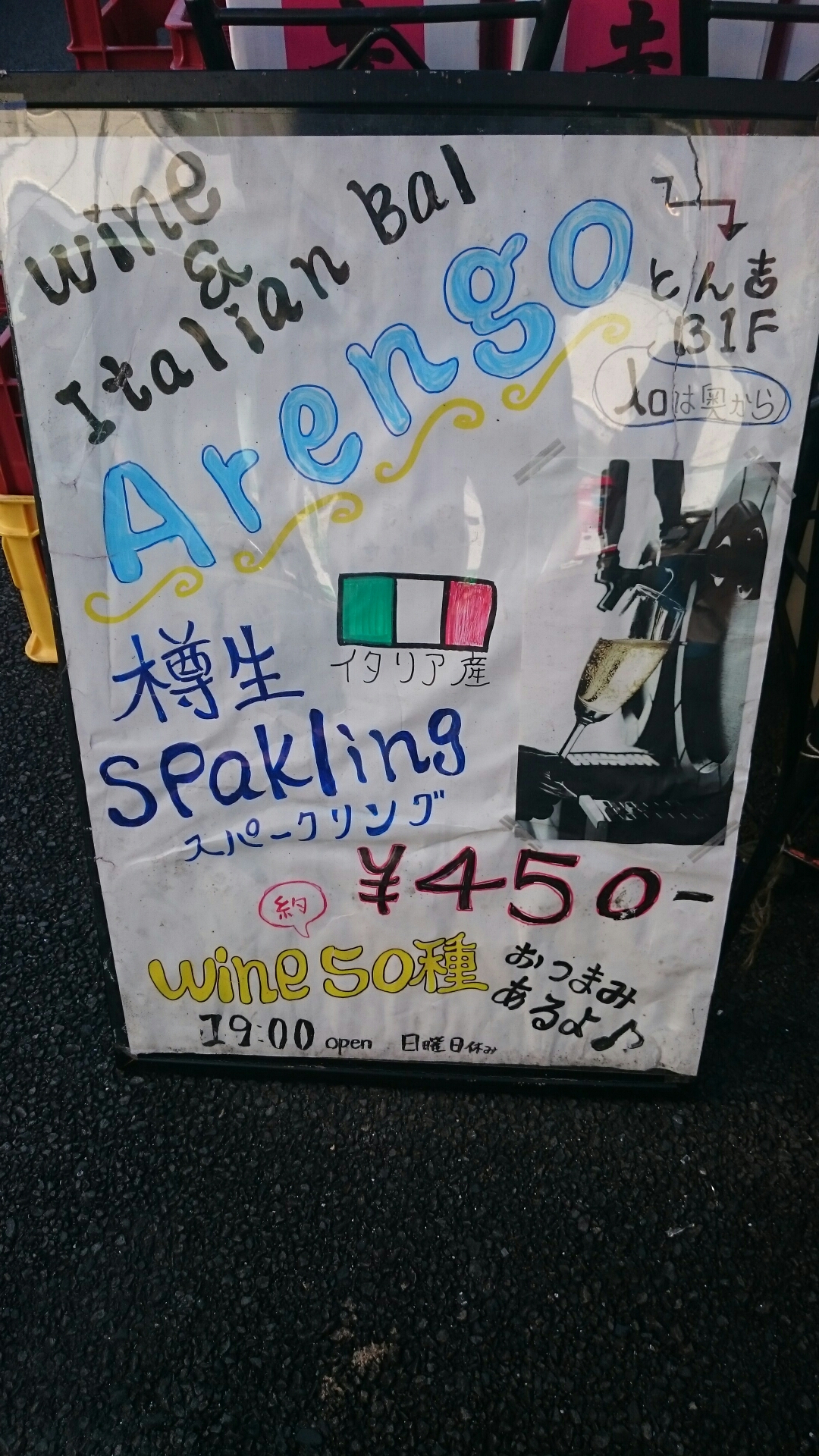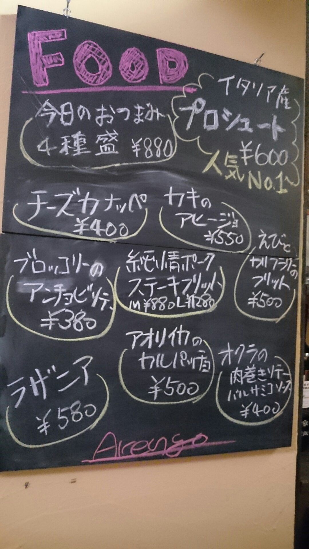 本日うかがったのは南林間駅西口降りて左を見ると、0.1秒で気付く「とん吉」さんの地下にあるワインバー『Arengo』(アレンゴ)さんです。