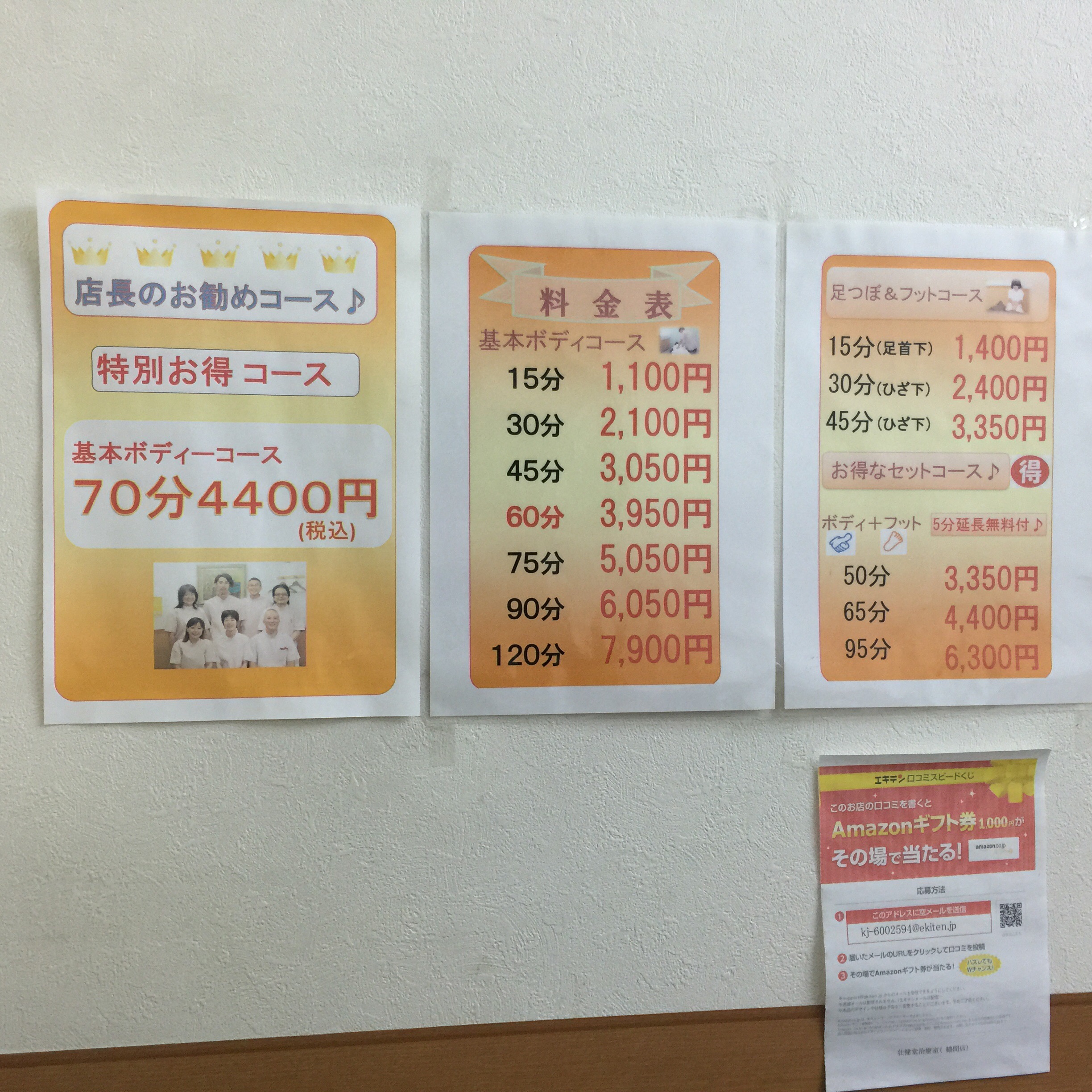 また、12月25日まで、初めての方もリピーターの方も、「FMやまとを聴いた」方なら、全コース1回のみ20%オフで対応してくれます。