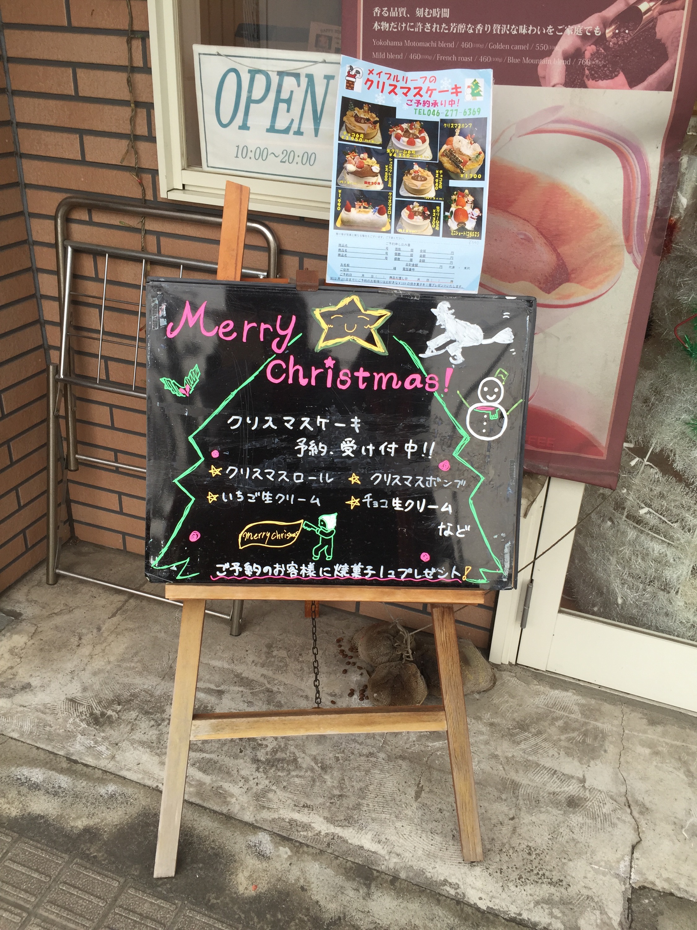 クリスマスケーキのご予約も20日頃まで承っています。来店してお申し込みください。ご予約した方にはもれなく焼き菓子をひとつプレゼント!